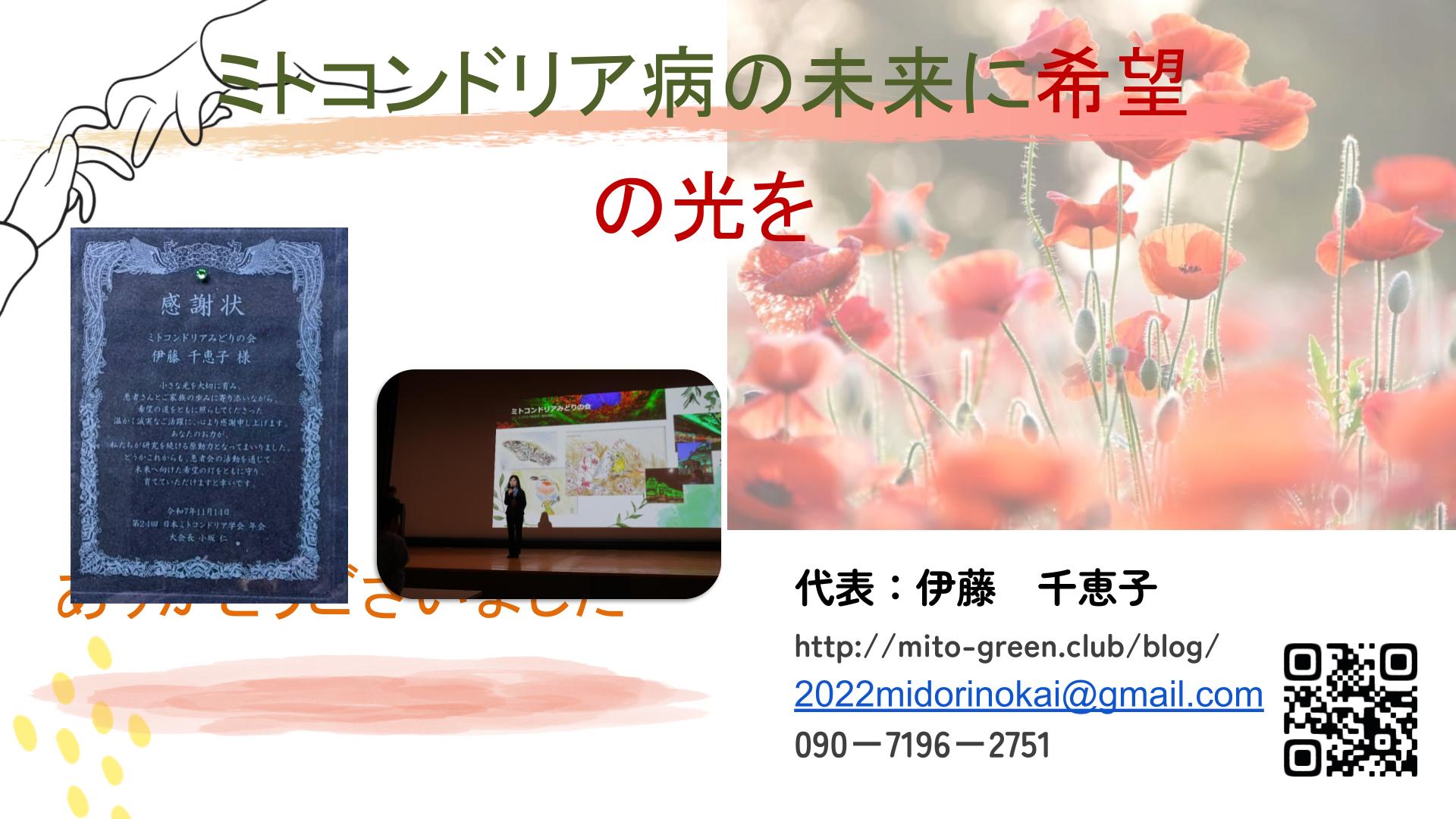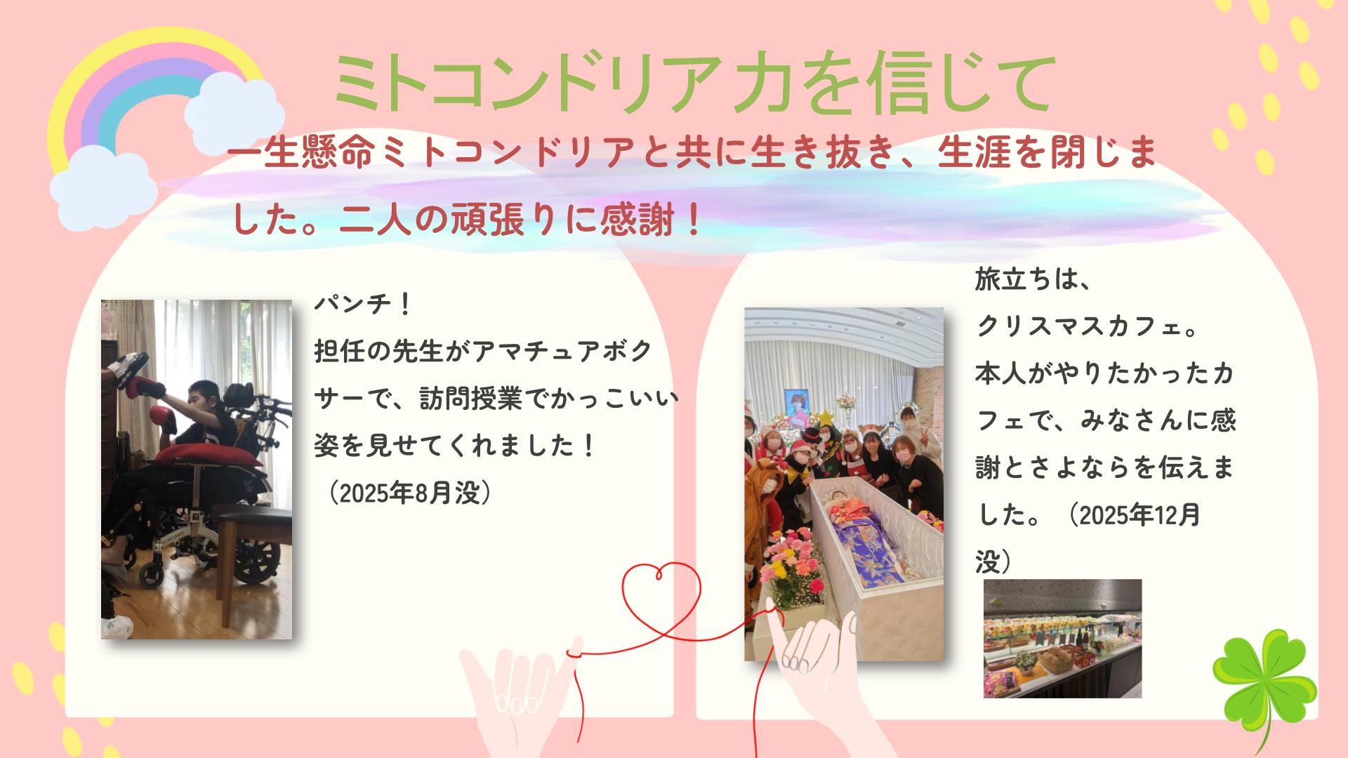 ミトコンドリア病の理解が医療の現場に広がることを、心より願っています