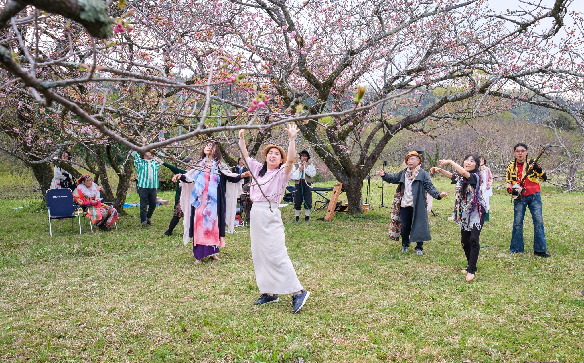 歌や踊りや大道芸やお芝居 ・・出演者、観客入り交じり、みんなで囲み、、、